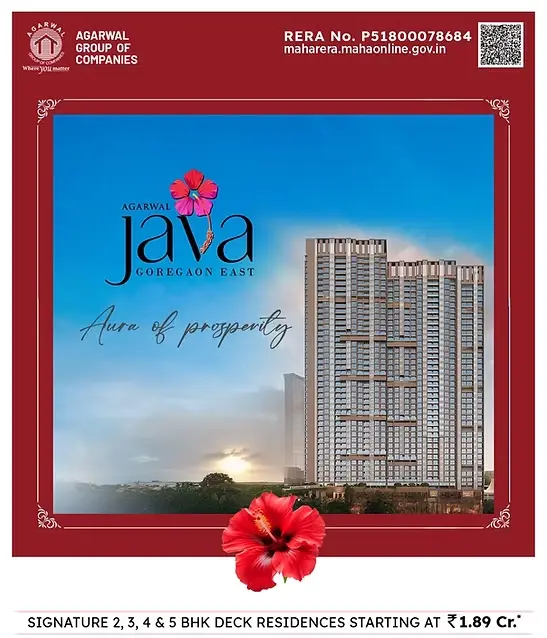 Agarwal Java is the last, signature tower of the Agarwal Floresta development — crafted for buyers who want space, views and lifestyle in one address. Featuring generously proportioned 2, 3, 4 and 5 BHK deck residences with private balconies and thoughtful interiors, Java delivers panoramic sights and well-planned living spaces that balance luxury with everyday comfort. The brochure presents Java as “Goregaon’s most iconic lifestyle abode,” offering handpicked luxury amenities and podium/terrace-level facilities that create a true neighbourhood within the building. PROJECT HIGHLIGHTS Final / signature tower of Agarwal Floresta (C-Wing — “Java”). Spacious 2, 3, 4 & 5 BHK deck residences with private balconies and panoramic views. Thoughtful layouts and large balcony areas (see floor plans & unit areas in brochure). MahaRERA No.: P51800078684.