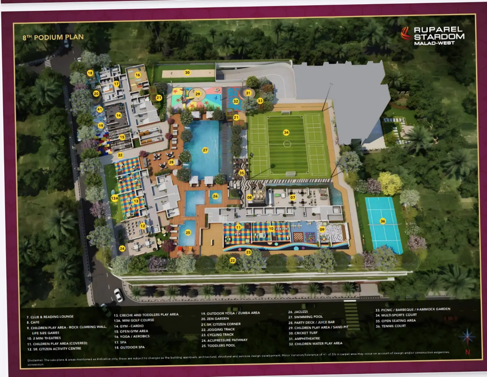 Ruparel Stardom is an affluent residential address in Malad West, Mumbai. It comprises majestic 2 BHK and 3 BHK residences with decks for discerning homebuyers. The apartments come with 12 feet floor-to-ceiling height and a car park. The 3 BHK apartments feature a private lobby and lift. One can relish unobstructed views of the Arabian Sea from the expansive decks. This gated community also hosts 42+ modern amenities, including an 11,000 sq. ft. banquet hall with 1200 seating capacity and 14 Guest Rooms. You can also indulge in facilities like a tennis court, cycling track, gymnasium, jacuzzi, spa, jogging track, 2 mini theatres, business centre, half Olympic-size swimming pool with a separate kids pool, multipurpose sports court, etc.